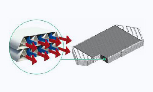 每一风道都被逆向三通道环绕, 从而保证最高热回收率